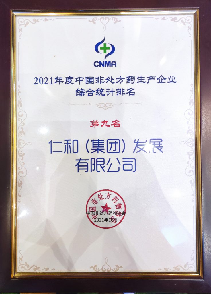 仁和集團榮獲2021年度中國非處方藥生產企業綜合統計排名第九名 發布時間: 2021年10月20日 15:08:48 閱讀量: 11,990 下一篇:仁和集團榮膺“新中國成立70周年醫藥行業標桿企業”上一篇:仁和集團再次榮登中國醫藥商業百強企業