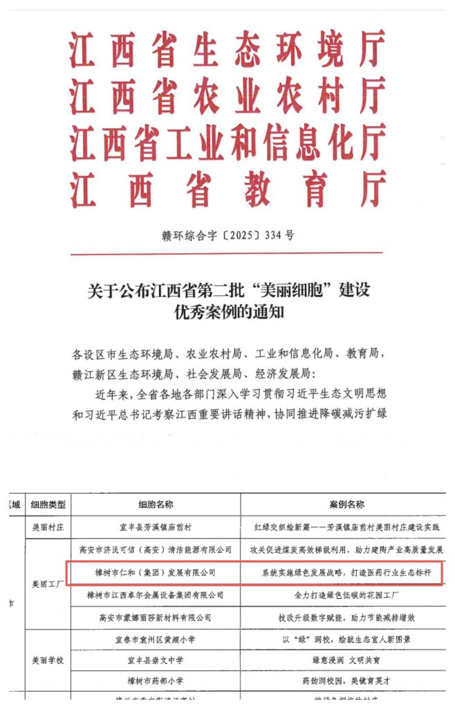 近日,江西省生態(tài)環(huán)境廳、省農(nóng)業(yè)農(nóng)村廳、省工業(yè)和信息化廳、省教育廳等四部門聯(lián)合公布全省第二批“美麗細(xì)胞”建設(shè)優(yōu)秀案例名單,仁和863科技園憑借系統(tǒng)化的綠色發(fā)展實(shí)踐和顯著的生態(tài)建設(shè)成效,成功獲評“美麗工廠”類優(yōu)秀案例。這一榮譽(yù)標(biāo)志著仁和集團(tuán)在推進(jìn)綠色制造、建設(shè)生態(tài)友好型工業(yè)園區(qū)方面取得的成果獲得省級權(quán)威認(rèn)定,為區(qū)域工業(yè)綠色低碳發(fā)展提供了示范樣本。