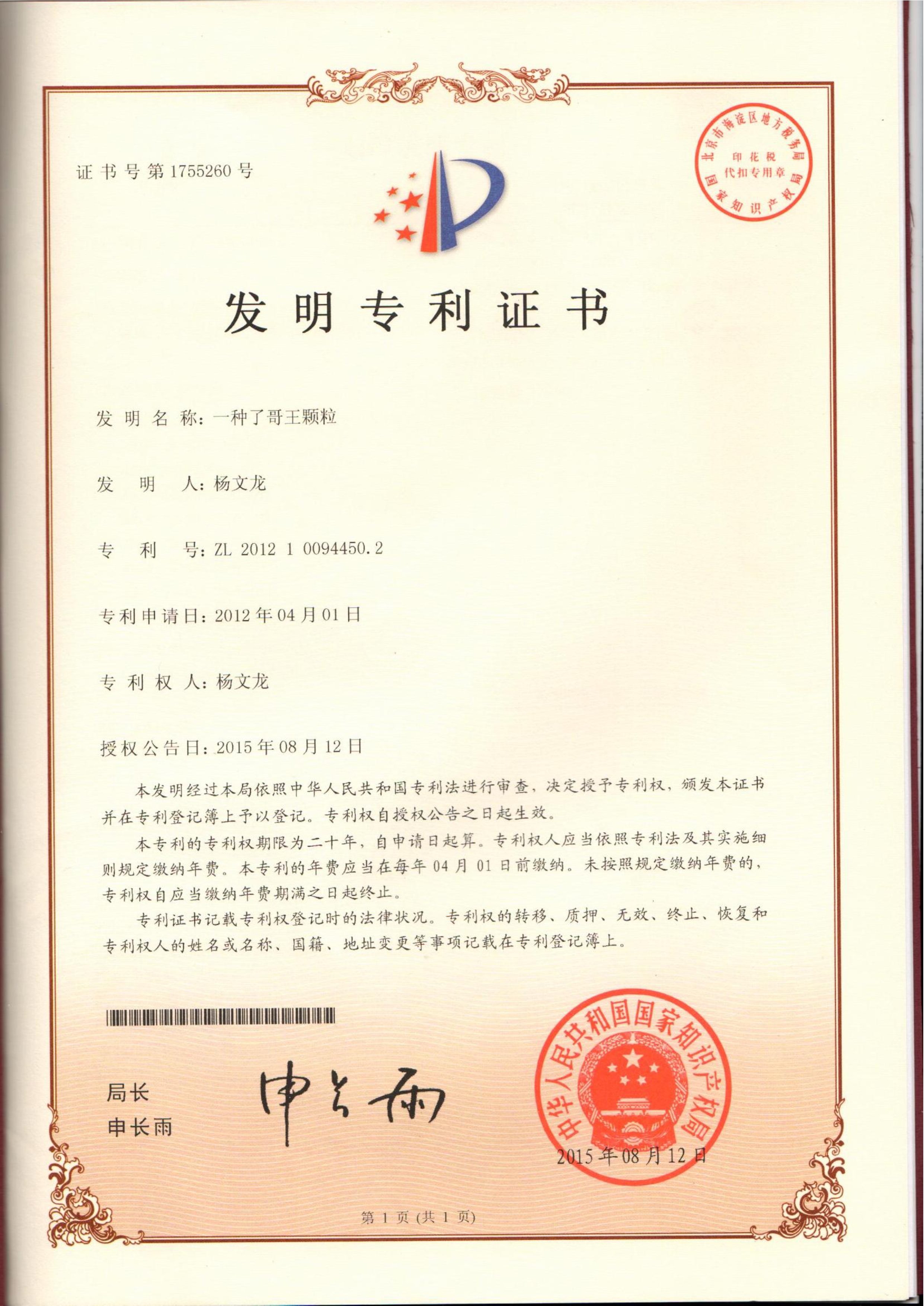 下一篇:一種了哥王膠囊專利證書