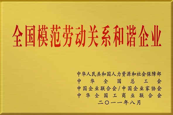 2011年全國模范勞動關系和諧企業銘牌
